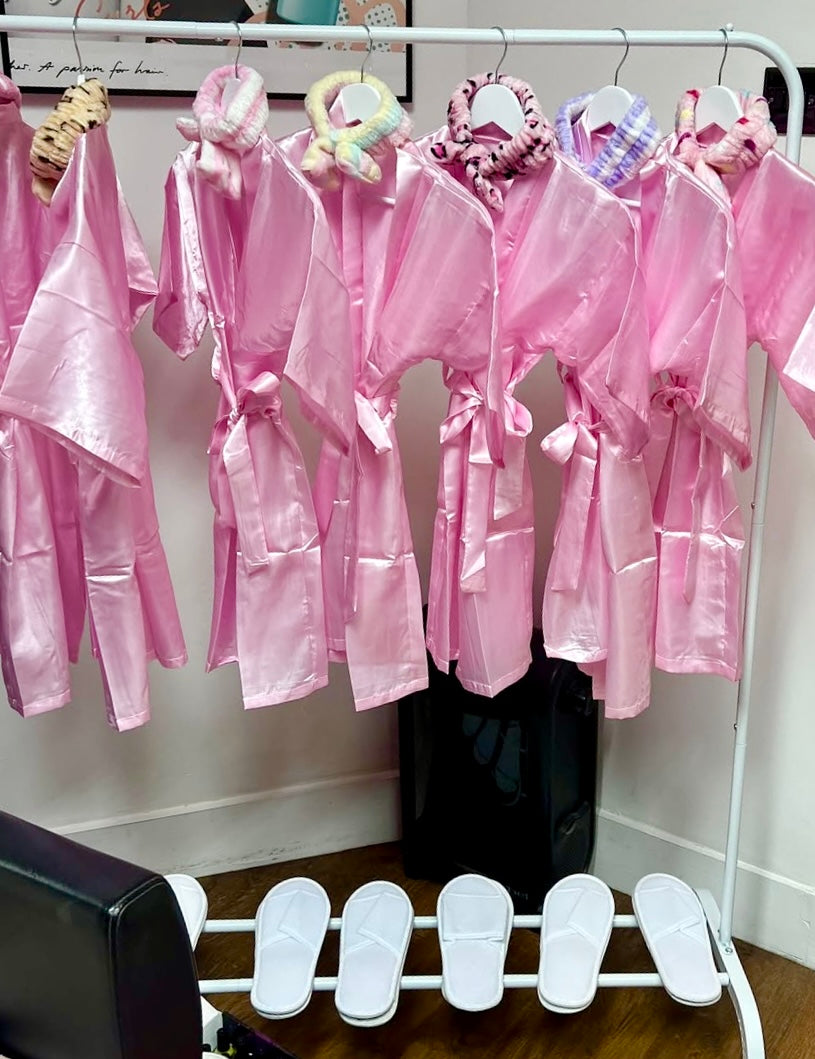 - Satin robes, headbands & slippers for each child (to use during the party)