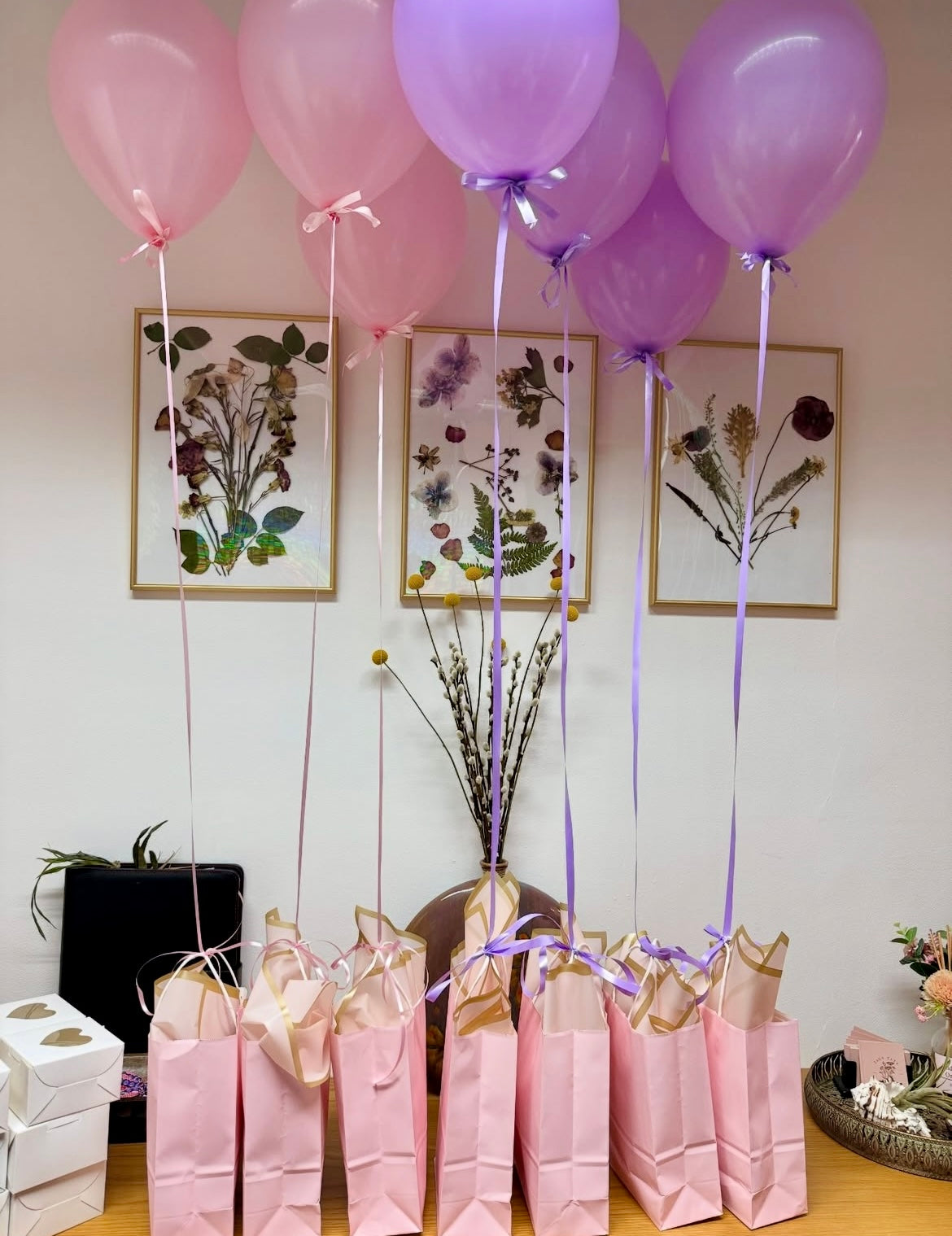 Matching colour bag filled with treats: Love Hearts, scrunchie, lip balm, nail file, bath bomb & heart bubbles. - Individual Latex Balloons – £2.50 each